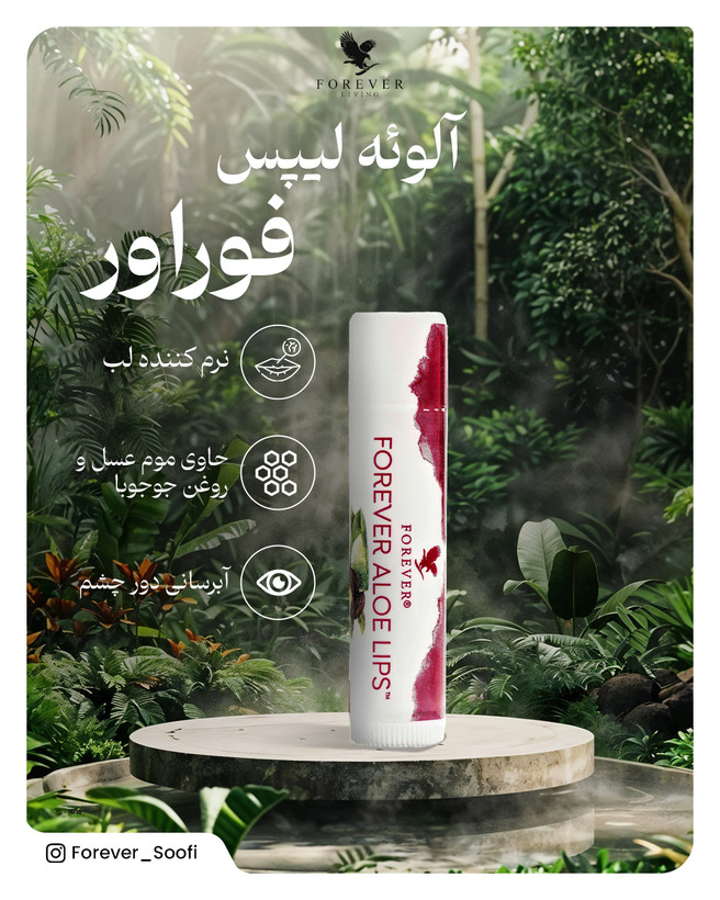 مرطوب کننده لب فوراور/ ازبین برنده تب خال / نگهدارنده ژل لب /روشن کننده لب های تیره/پرپشت کننده مژه و ابرو و مو/ ازبین برنده جای زخم و بخیه/ ترمیم کننده /بدون هیچ گونه مواد شیمیایی/4/5 گرم /از کمپانی فوراور لیوینگ پروداکتز آمریکا