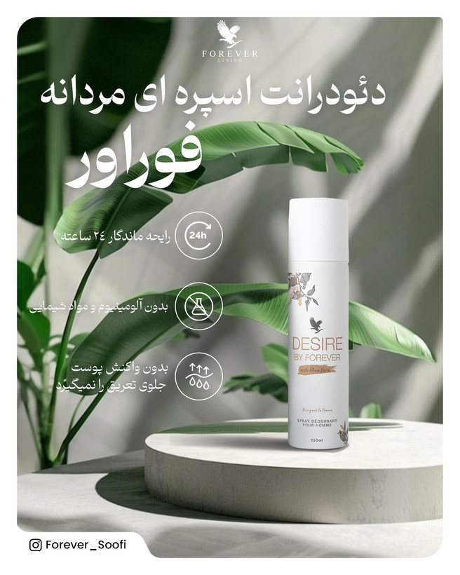 مام اسپره/ دئودارنت آقایان فوراور/از کمپانی فوراور لیوینگ پروداکتز آمریکا/بدون هیچ گونه مواد شیمیایی/ رایحه چوب تلخ و خنک/اصل/۱۵۰ میل/ضمانت کالا