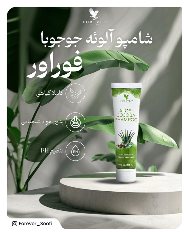 شامپو آلوئه جوجوبا فوراور لیوینگ پروداکتز آمریکا/ شامپو بدون سولفات اصل/کاملا گیاهی و بدون مواد شیمیایی/300میل : ضمانت کالا