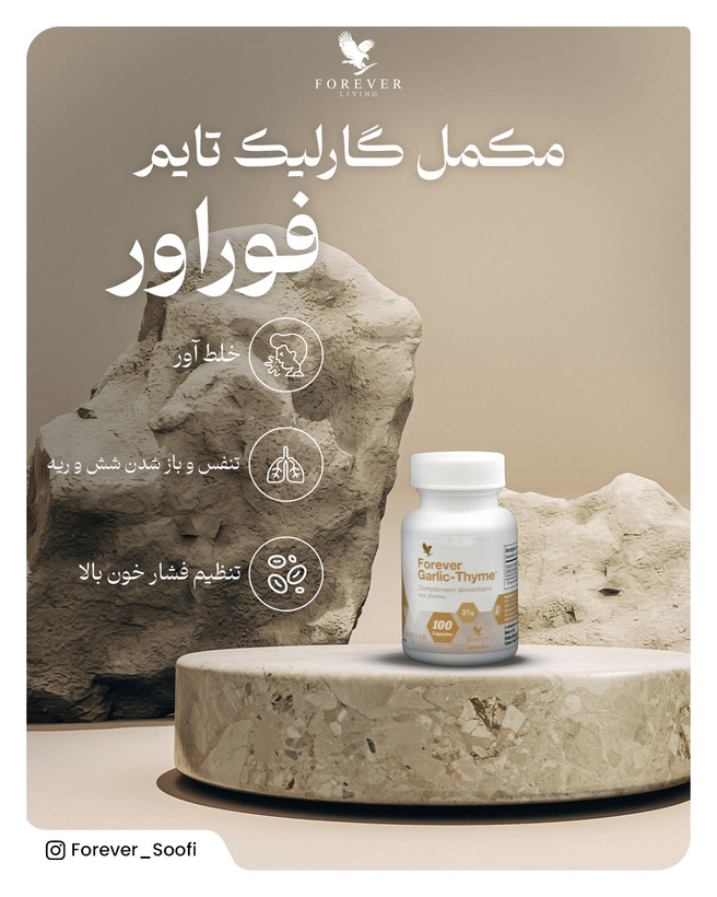 گارلیک تایم فوراور/ از کمپانی فوراور لیوینگ پروداکتز آمریکا/تنظیم فشار خون/ ضد ویروس و خلط آور / بدون هیچ گونه مواد شیمیایی/ تمیز کردن ریه و خلط های آن/ از بین بردن سرفه های خلط دار / کاملا طبیعی /ضمانت کالا